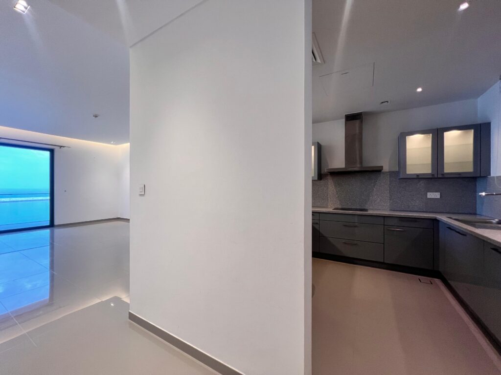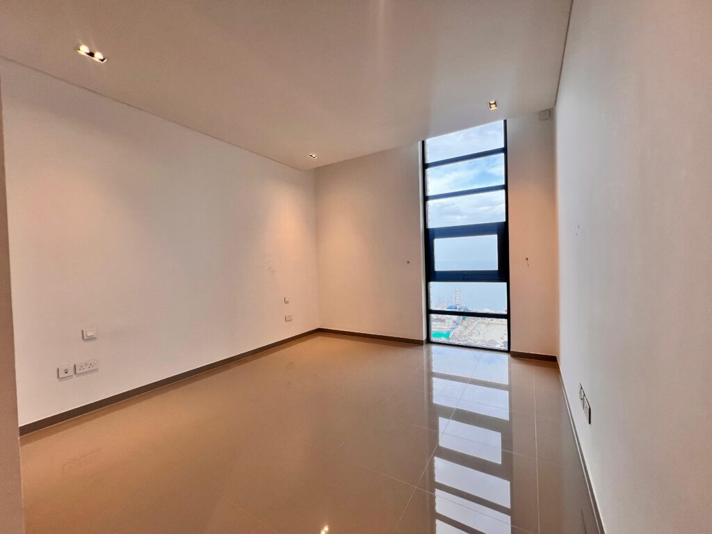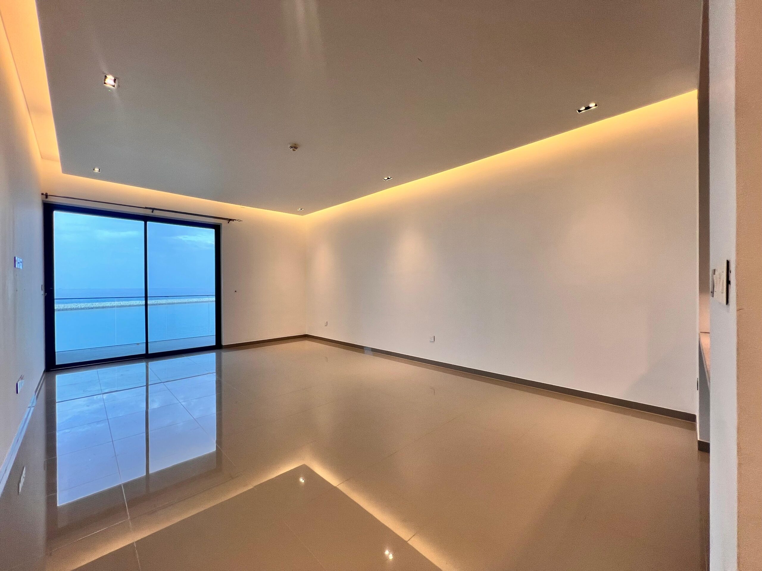 شقة عصرية للإيجار في الموج بإطلالة بحرية جميلة ومساحات واسعة.