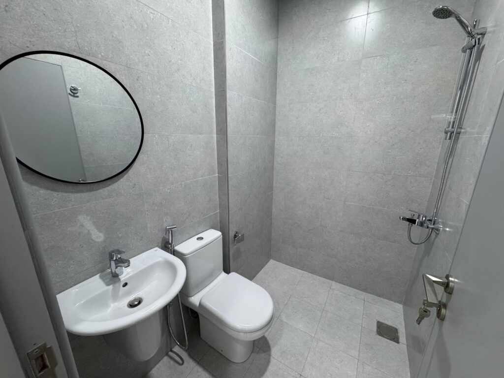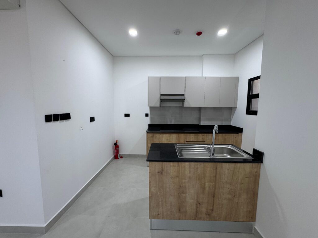 شقة للإيجار في العذيبة بمساحات واسعة وتصميم عملي، توفر غرفتي نوم مع 3 حمامات وصالة ومطبخ، بالإضافة إلى شرفة وغرفة غسيل ونظام أمني لراحة أكبر.