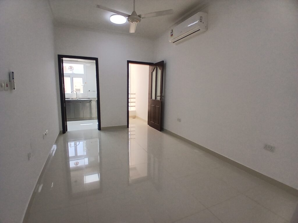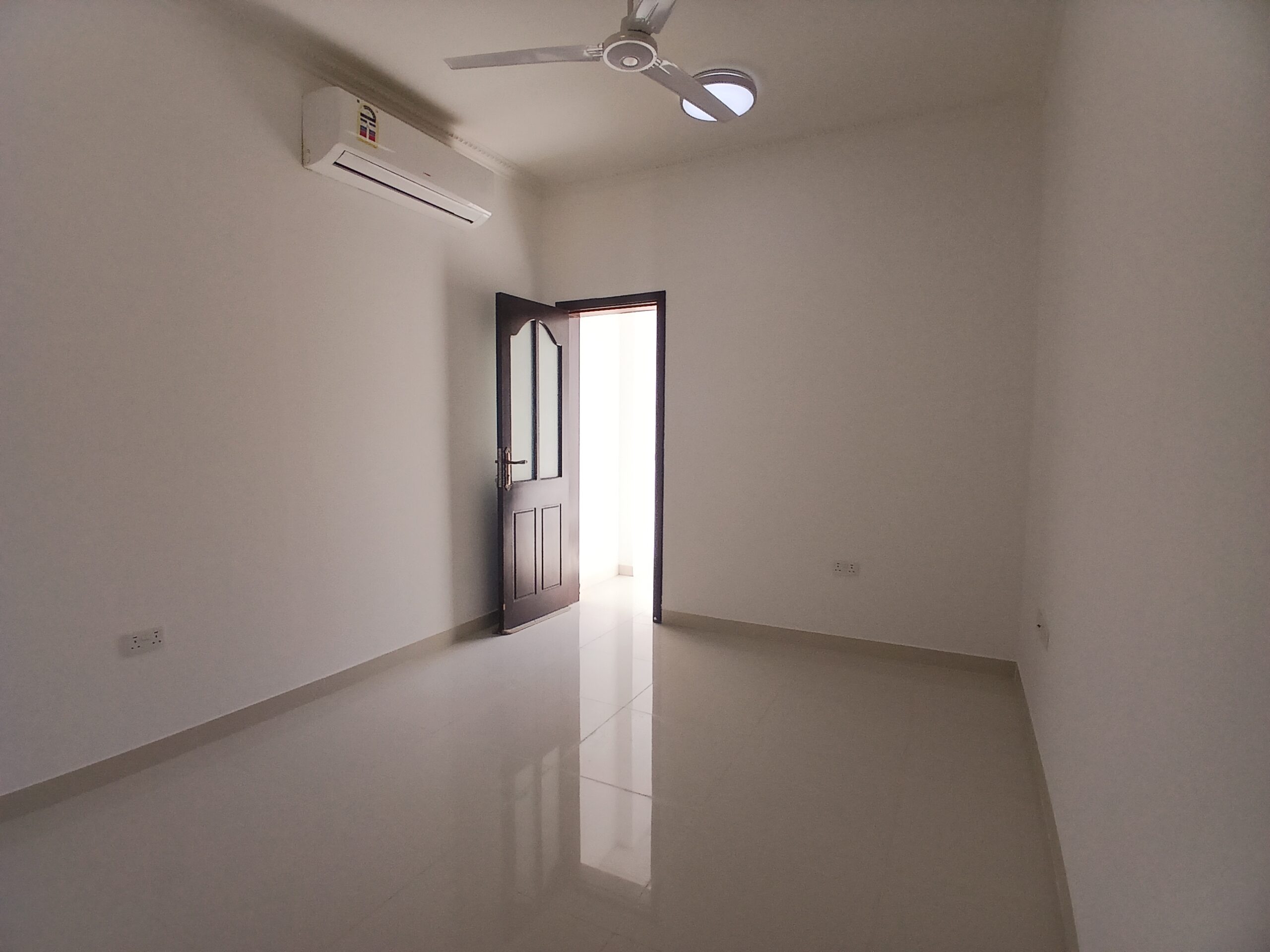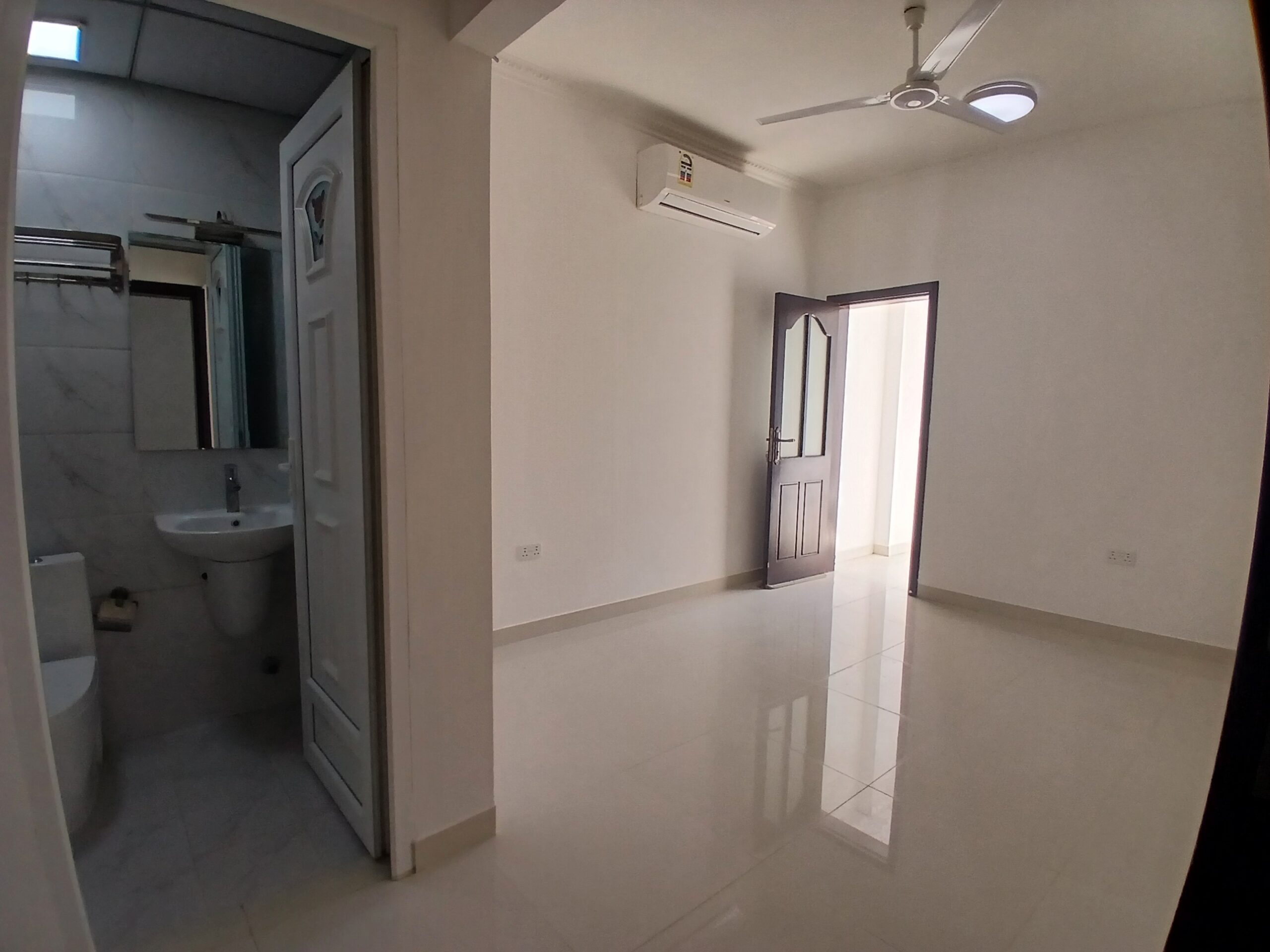 شقة للإيجار في بوشر بمخطط عملي ومناسب للسكن اليومي، تضم غرفة نوم ماستر مع حمام داخلي، وصالة مع حمام للضيوف، إضافة إلى شرفة ومنطقة غسيل مع توفر مواقف للسيارات.