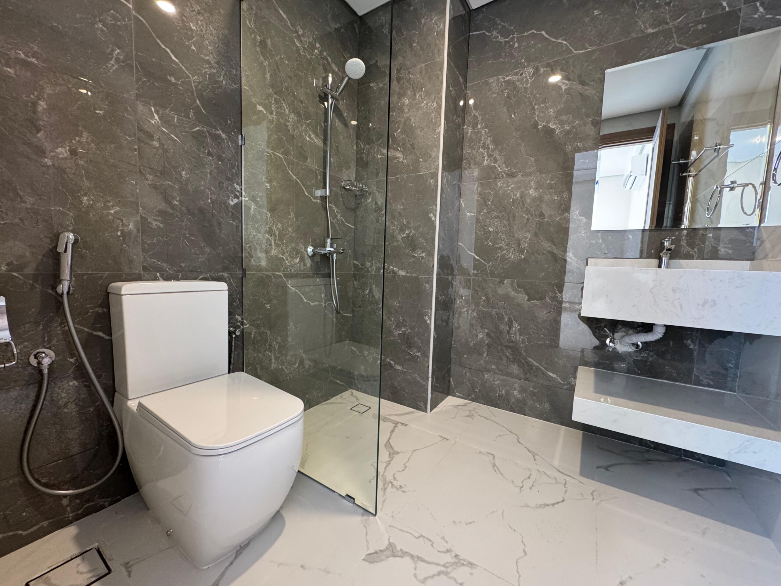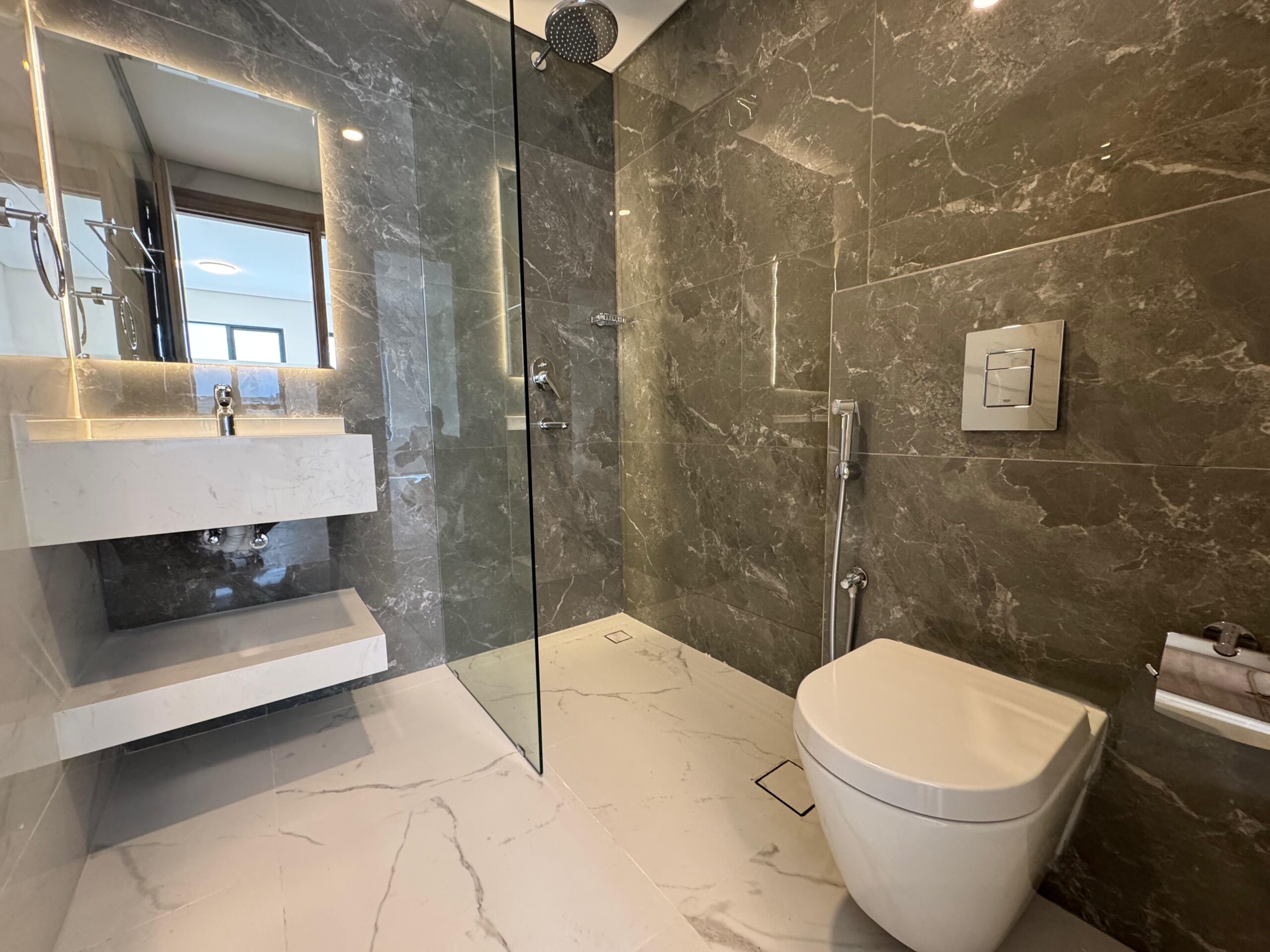 A spacious apartment for rent in Bosher, offering a functional layout with 2 bedrooms, 3 bathrooms, a hall, and an open kitchen.