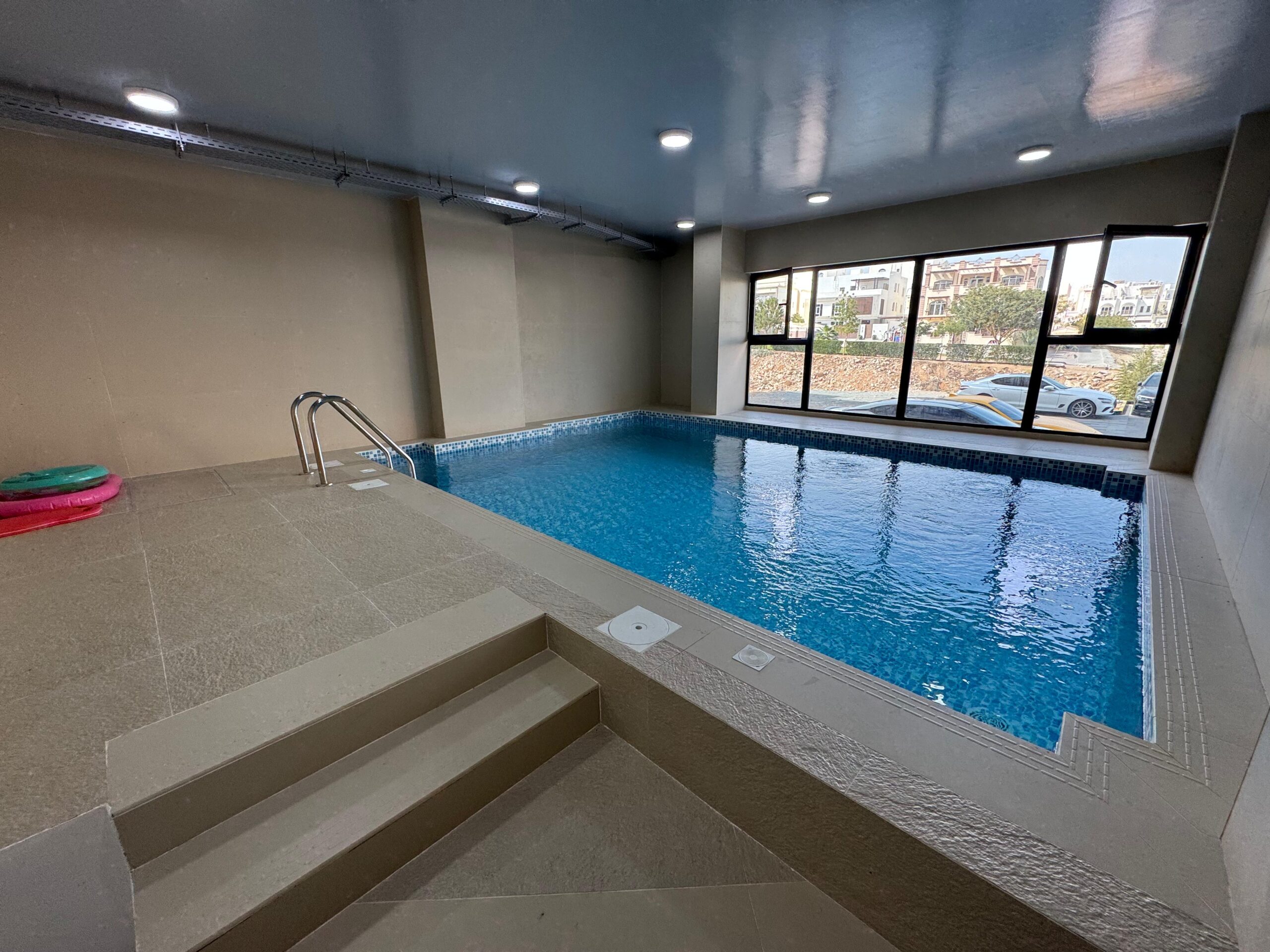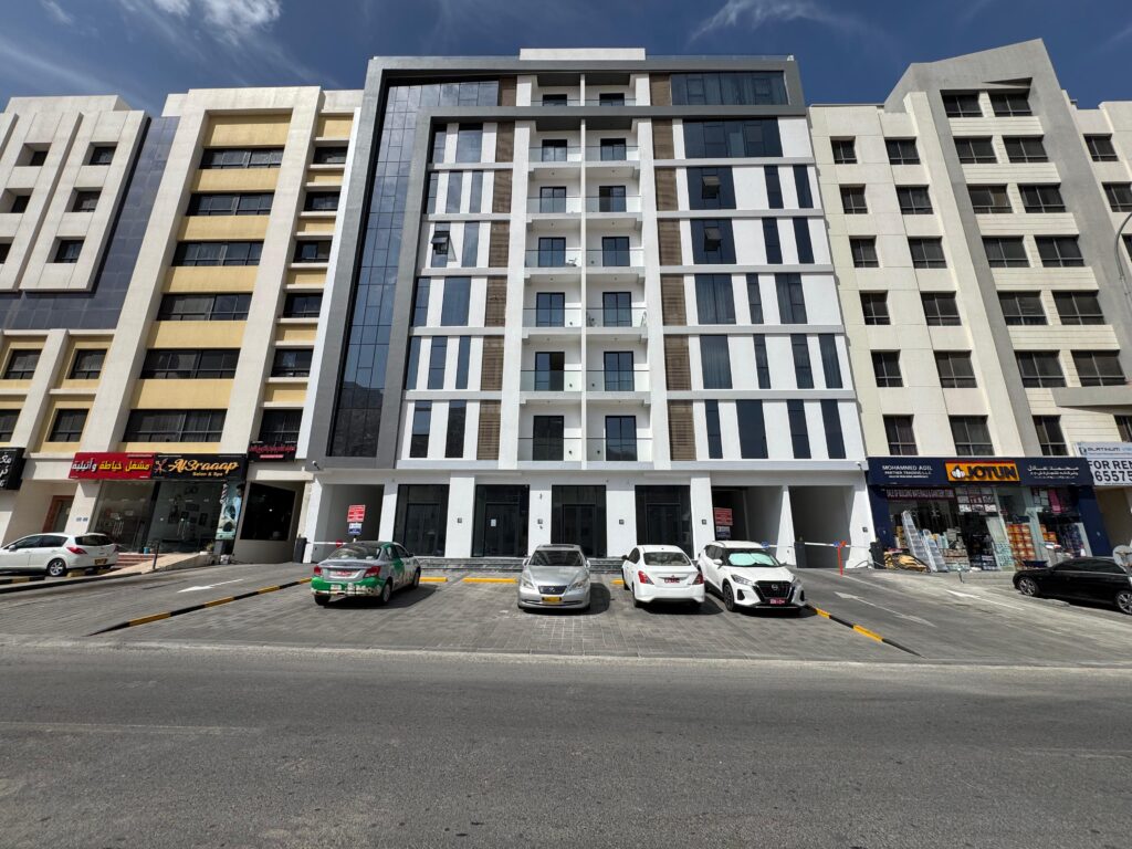 شقة للإيجار في بوشر تتكون من غرفتي نوم و 3 حمّامات مع صالة ومطبخ مفتوح وشرفة. تشمل المرافق مسبح مشترك، صالة رياضية، وموقف سيارات في القبو، وتقع في موقع مميز قريب من جميع الخدمات.