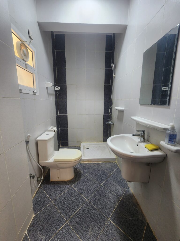 شقة للإيجار في بوشر بمخطط عملي ومناسب للسكن اليومي، تتكون من غرفة نوم واحدة مع حمامين وصالة ومطبخ، بالإضافة إلى توفر مواقف للسيارات.