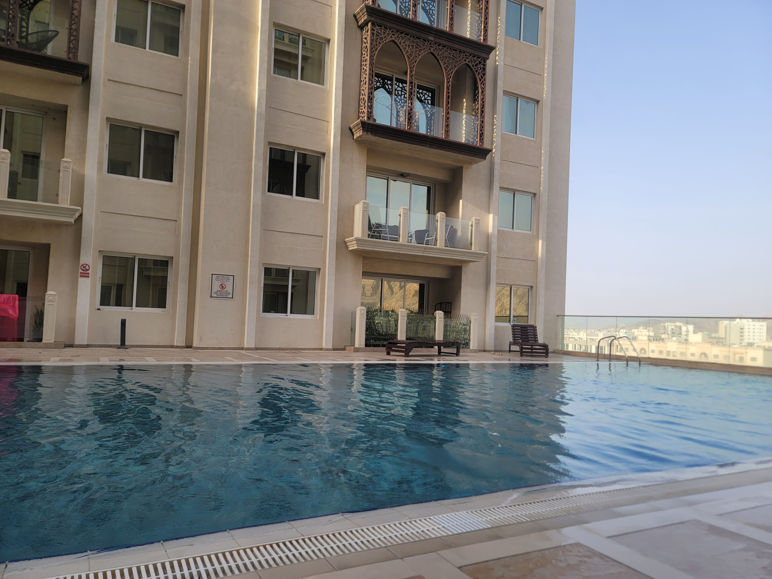 شقة فاخرة للبيع في بوشر، تتكوّن من 3 غرف نوم و4 حمّامات وصالة ومطابخ. تتميّز الشقة بمواقف مخصّصة للسكان، ومسبح، وصالة رياضية، ومنطقة لعب للأطفال، ومنطقة شواء.