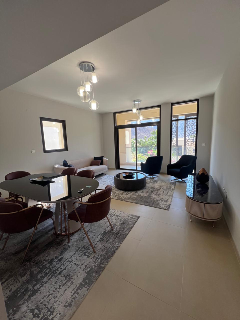 Furnished apartment for Sale in Muscat Bay, offering a refined living experience in one of Muscat’s most prestigious coastal communities. The apartment consists of 2 bedrooms, 2 bathrooms, a hall with dining area, a kitchen, and a laundry room, complemented by a private balcony.