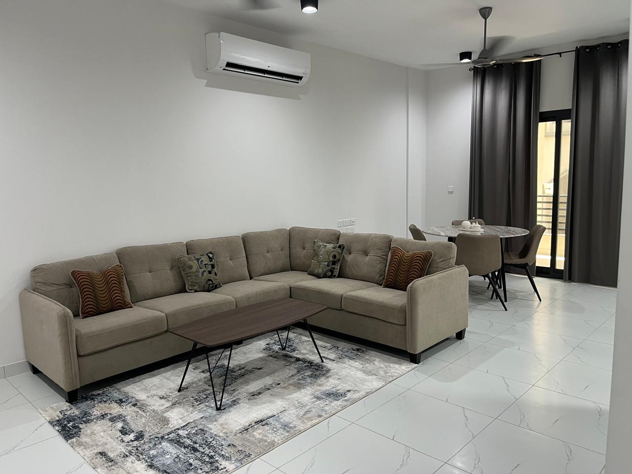 A modern furnished apartment for rent in Salalah, offering a generous 111 sqm layout with excellent facilities. The apartment features 3 bedrooms (including 2 en-suite) plus a study room.