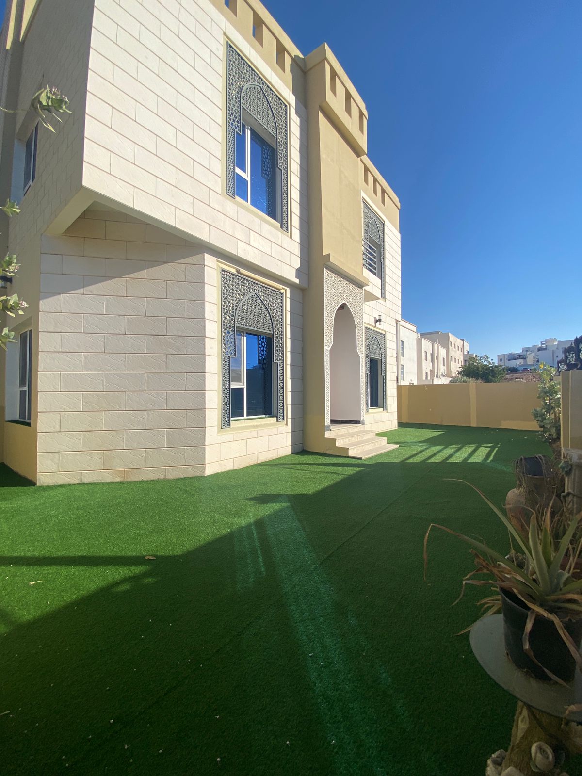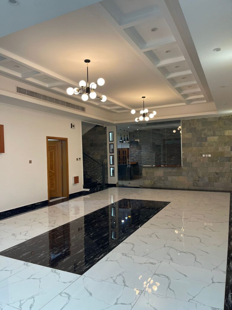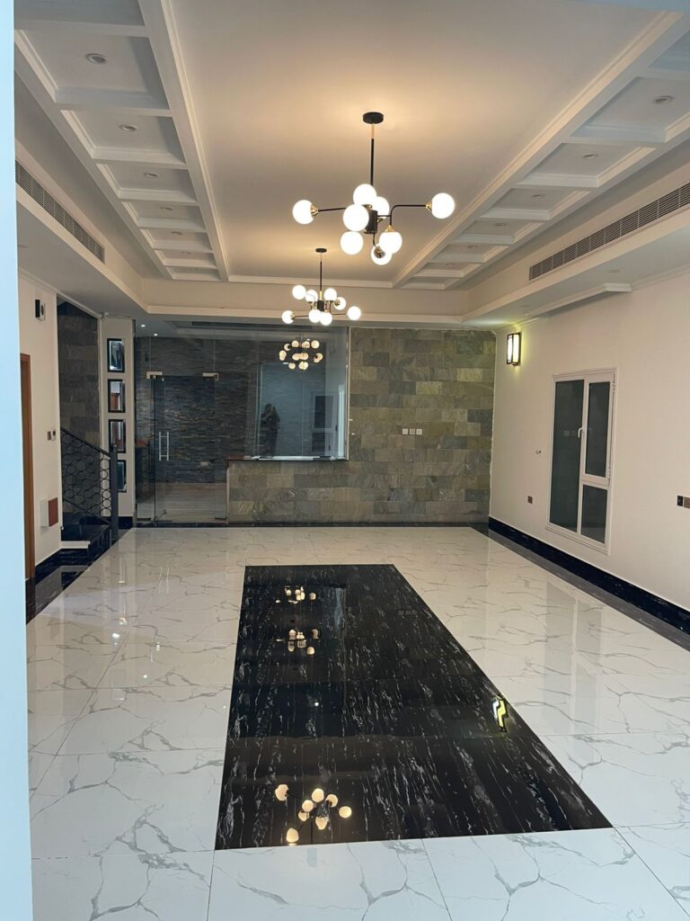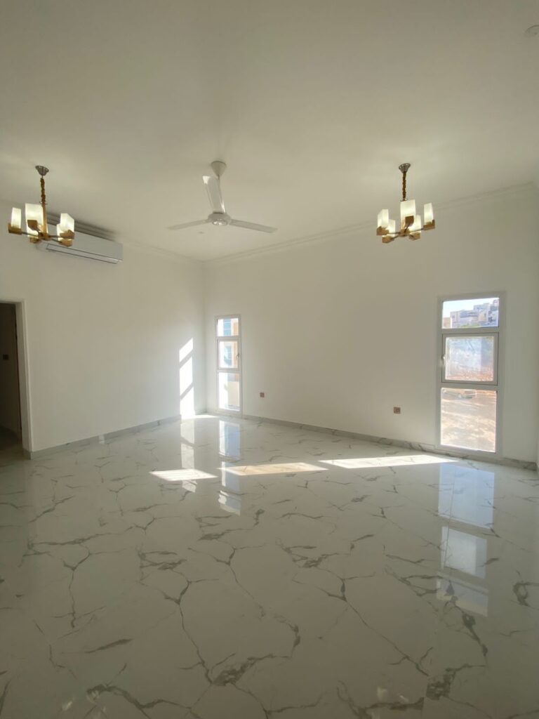 A spacious villa for rent in Al Ansab, offering a generous layout with 6 bedrooms plus majlis, 8 bathrooms, The villa includes a large hall, dining area, and kitchen with pantry, along with a balcony, sea view, laundry room, and front yard.