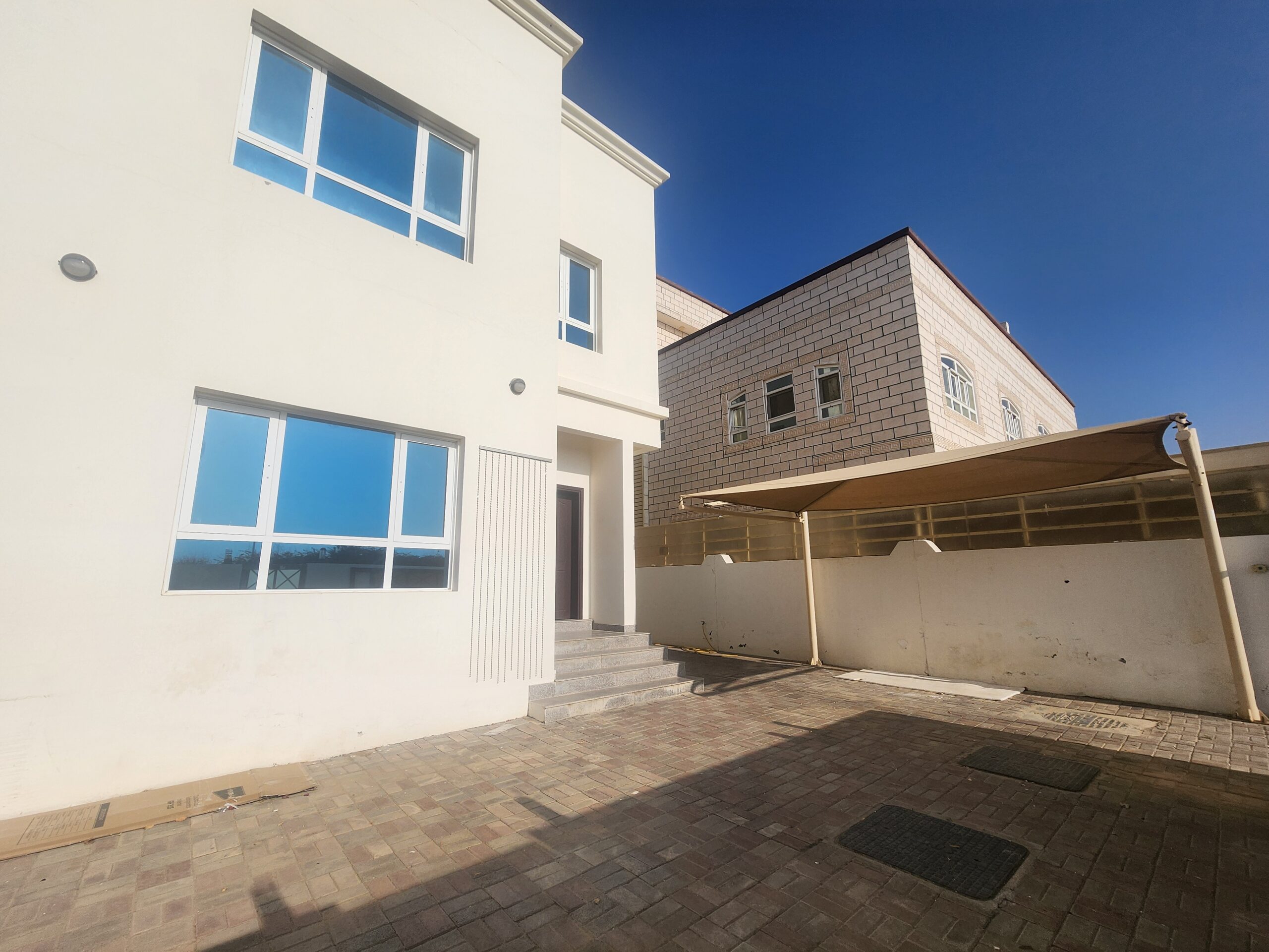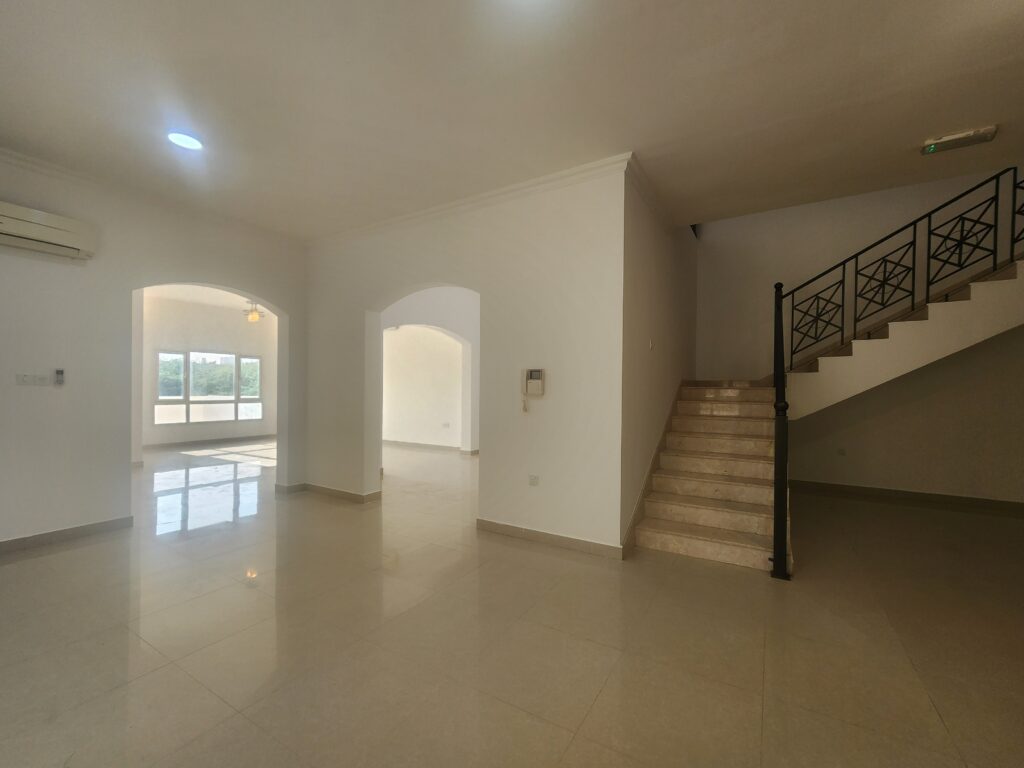 Spacious 5+1-bedroom villa for rent in Al Mawalih North, offering a practical family layout with outdoor space and shaded parking.