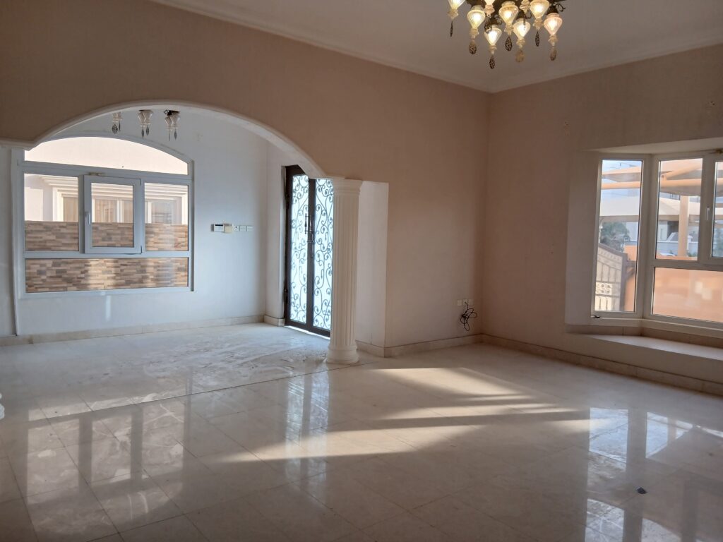 A spacious villa for sale in Al Mawalih North, offering a comfortable and well-organized layout suitable for large family living. The villa consists of 5+1 bedrooms, 6 bathrooms, a hall, two majlis, a living area, and a kitchen.