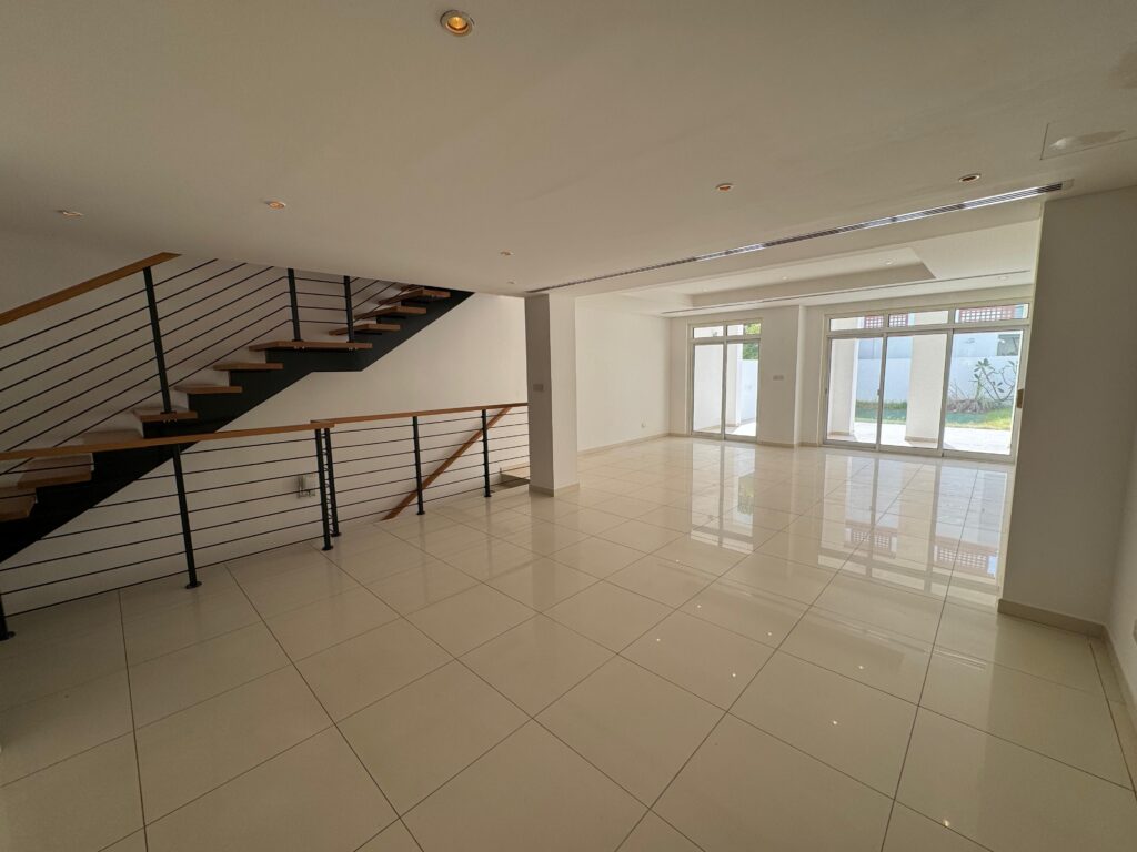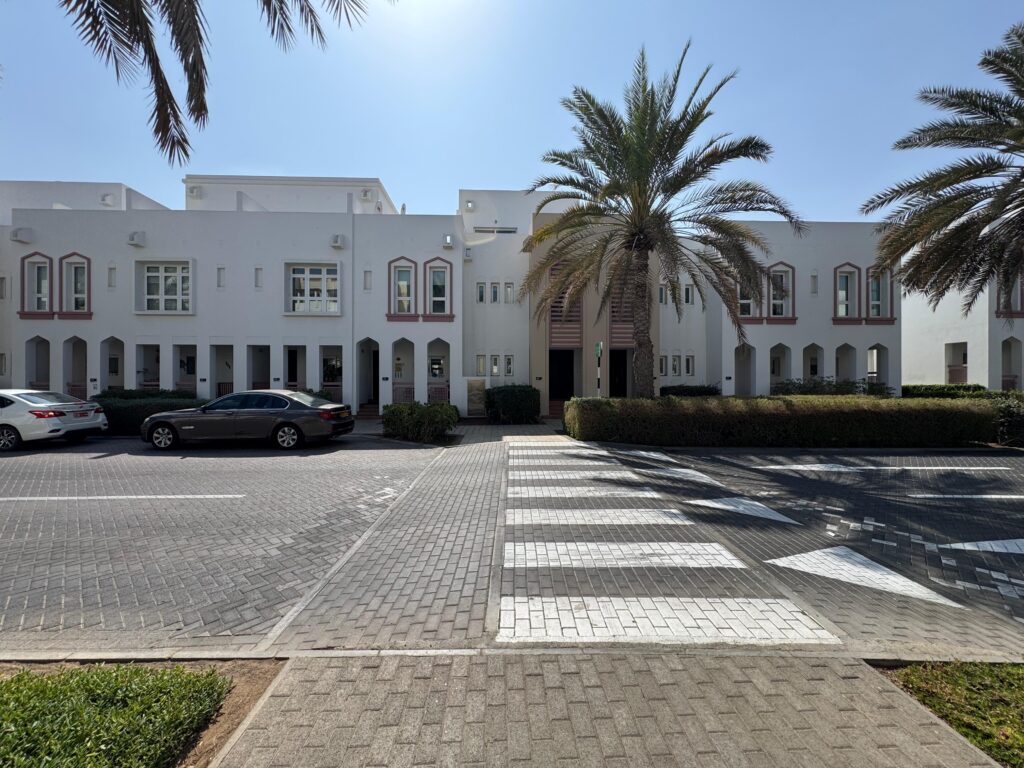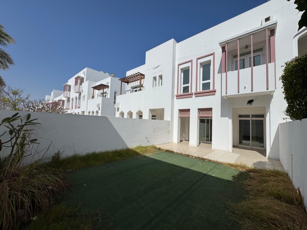 A well-designed townhouse for rent in Al Mouj, offering a modern layout with basement parking, private garden, and spacious living areas.