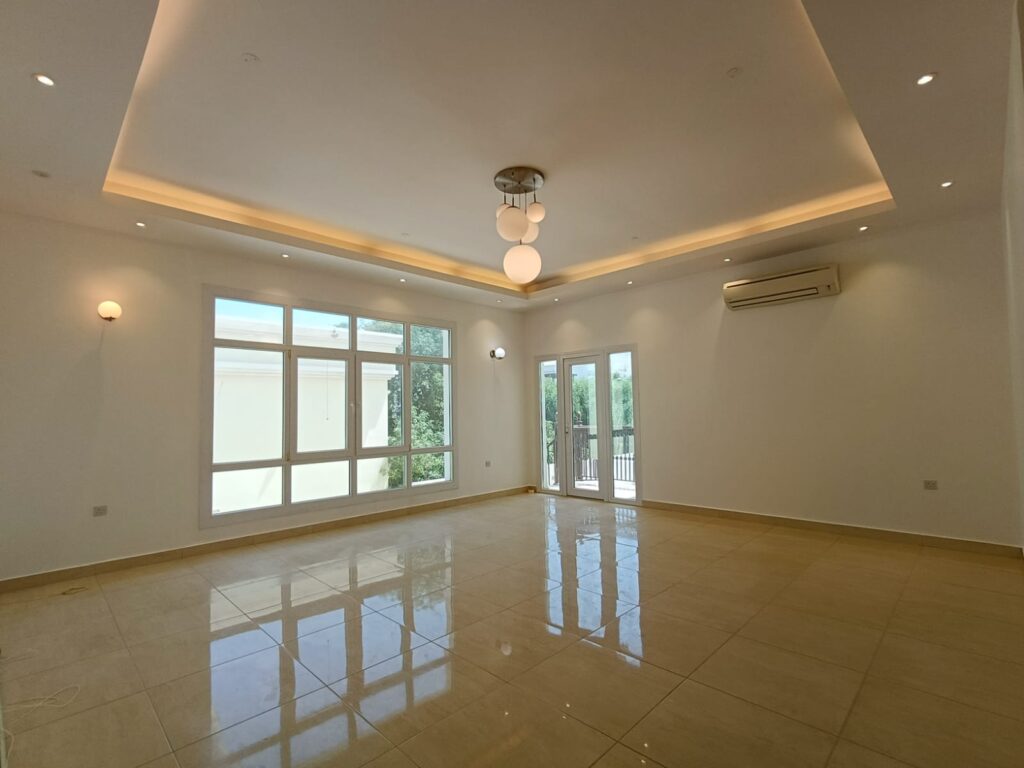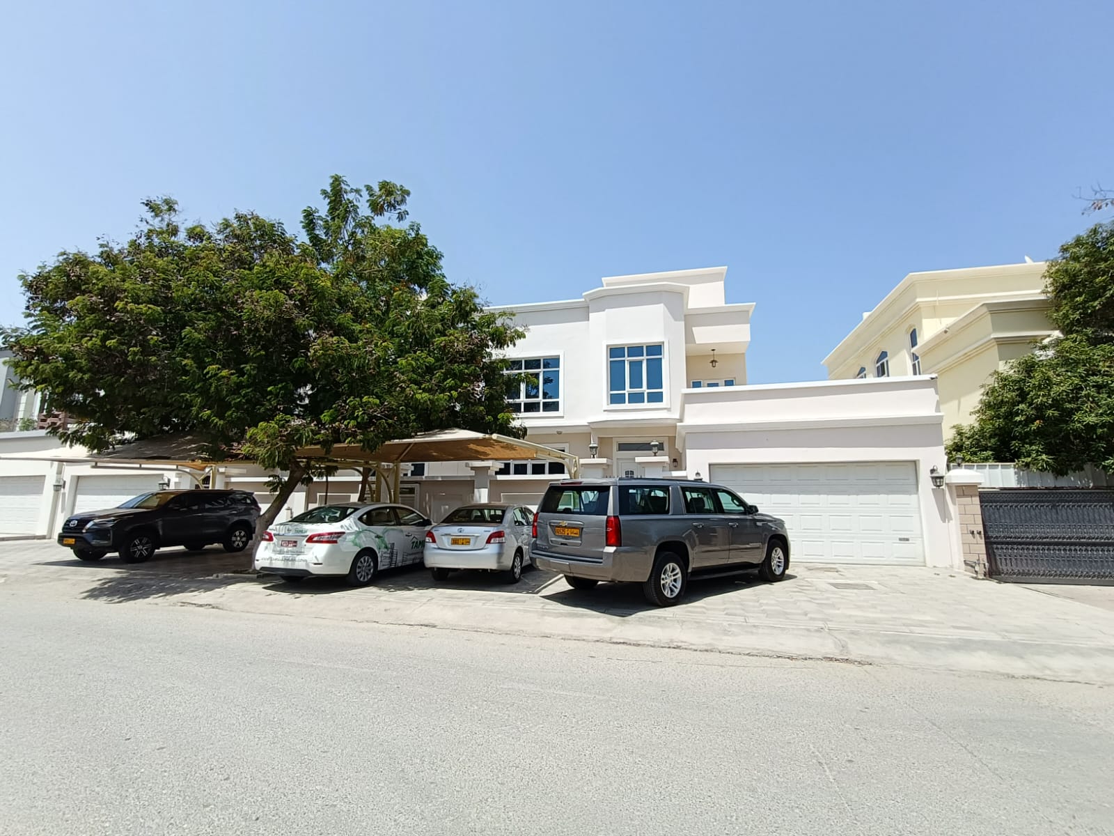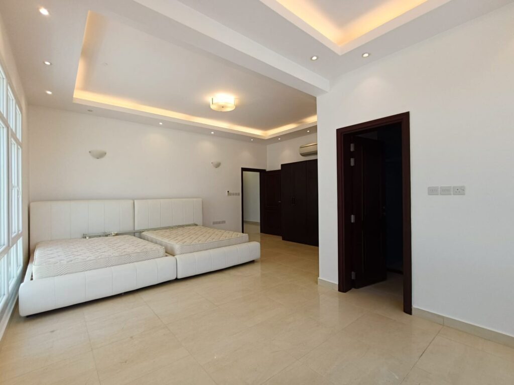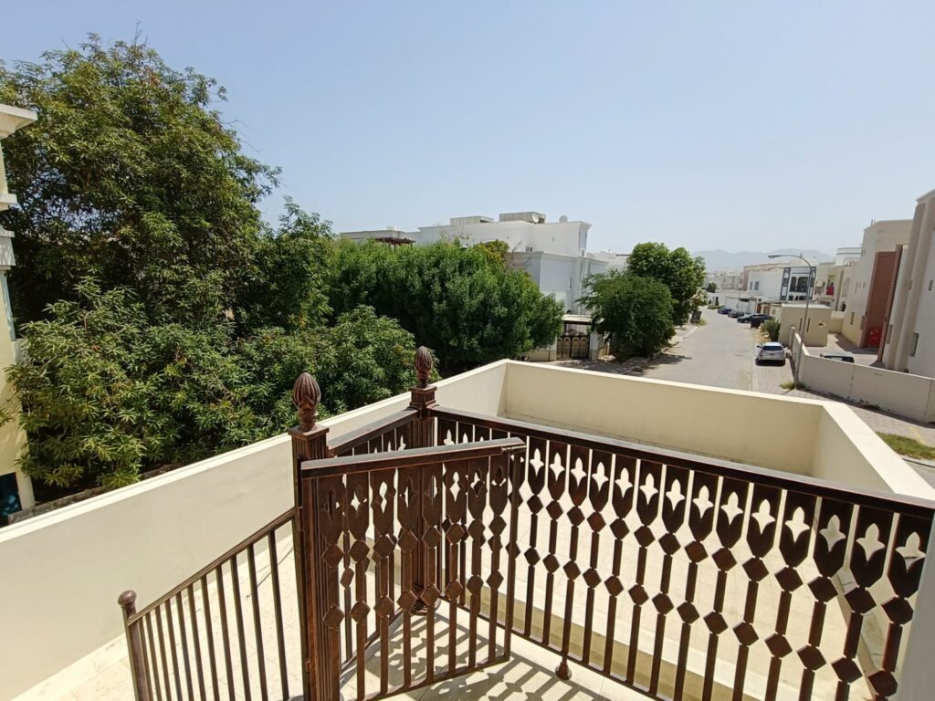 Semi furnished twin villa located in Al Azaiba. It consists of a 6 bedrooms, 8 bathrooms, 2 halls, majlis, laundry room, balcony, and fully equipped kitchen. It has facilities that a maid’s room shaded parking for 2 cars, outside shaded parking, and back yard.