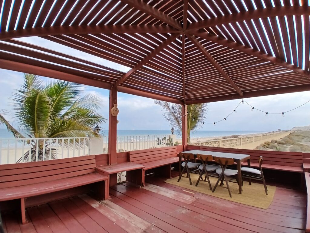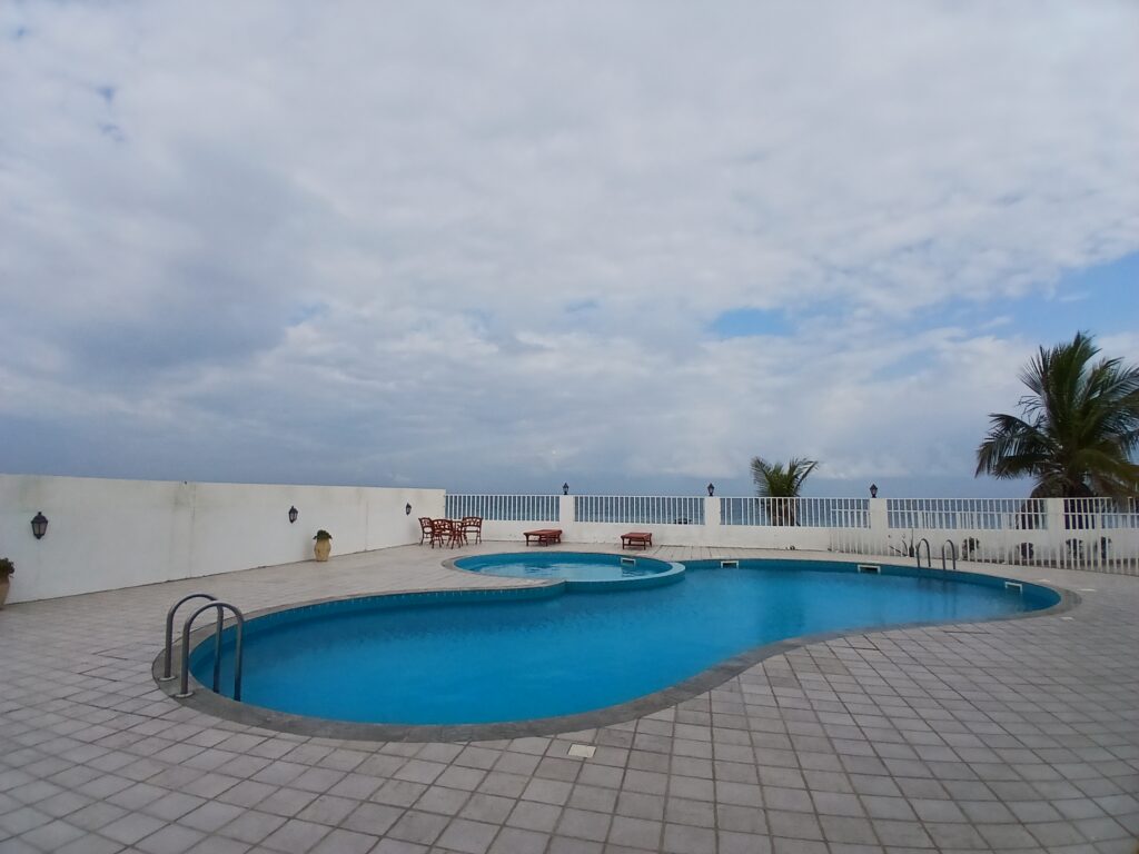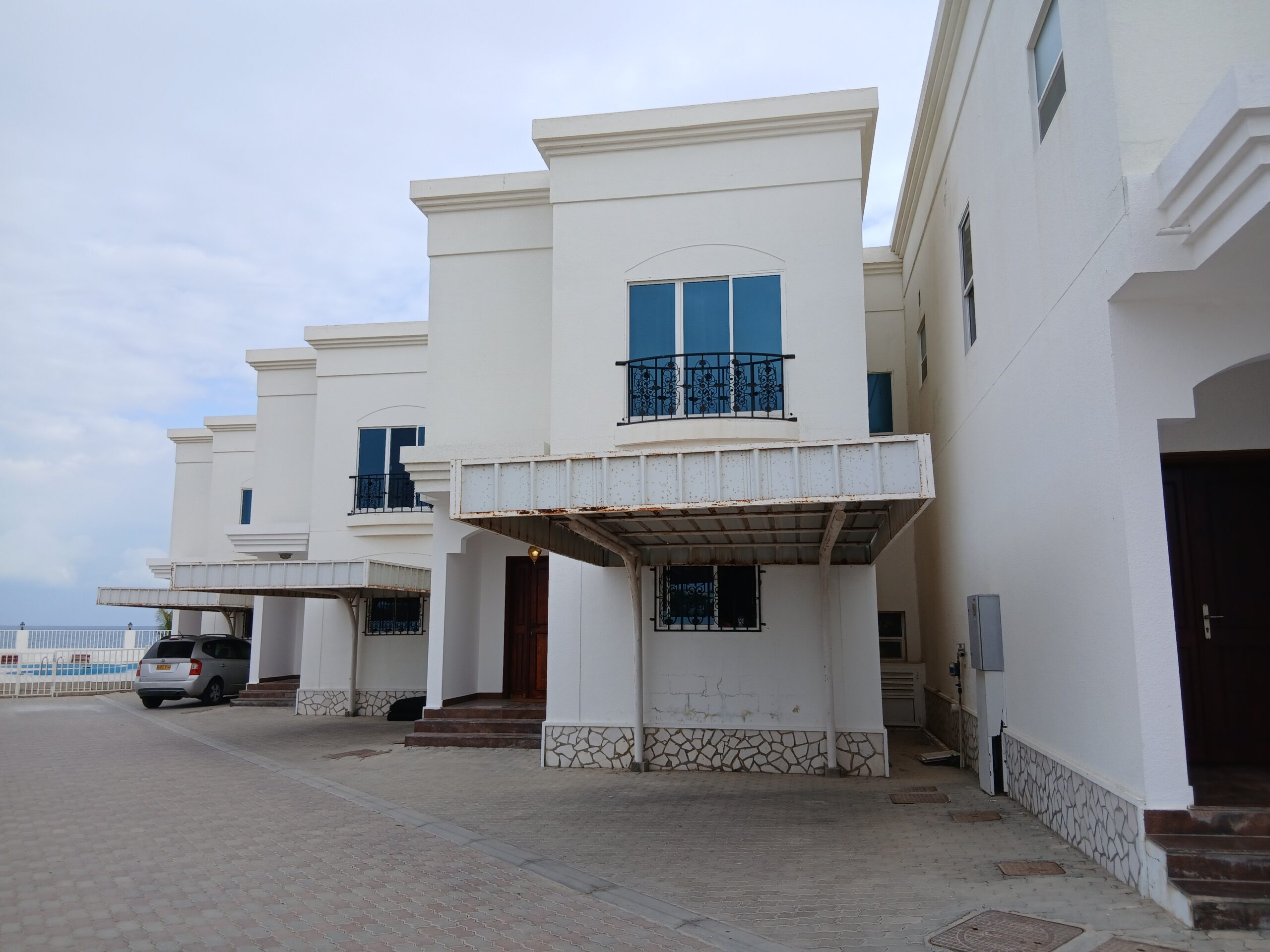 A comfortable villa for rent in Azaiba, offering a relaxed lifestyle close to the sea. The villa consists of 3 bedrooms, 3 bathrooms, a hall, and a kitchen, with access to a shared swimming pool, garden, and sea views.