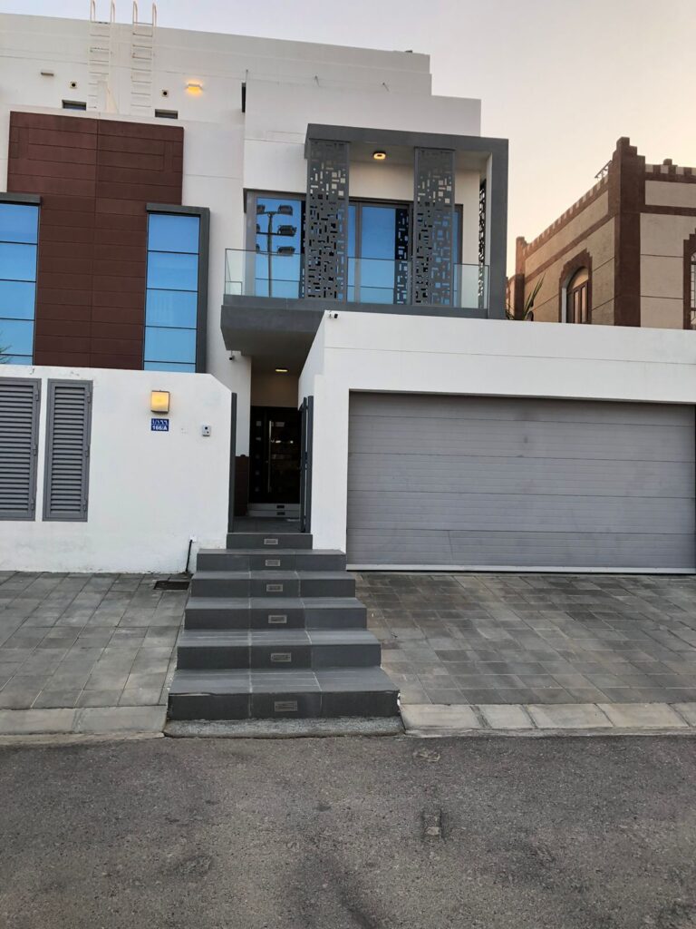 A modern and spacious twin villa for rent in Bosher, offering a well-designed layout ideal for family living. The villa consists of 4+1 bedrooms, 6 bathrooms, a hall, and a kitchen, with generous outdoor space and parking.