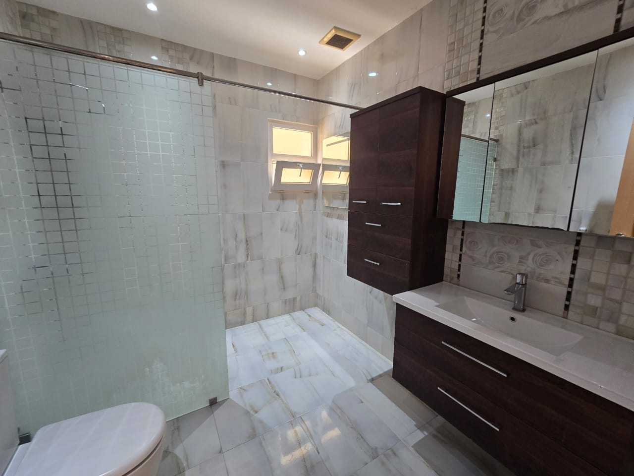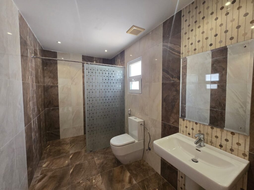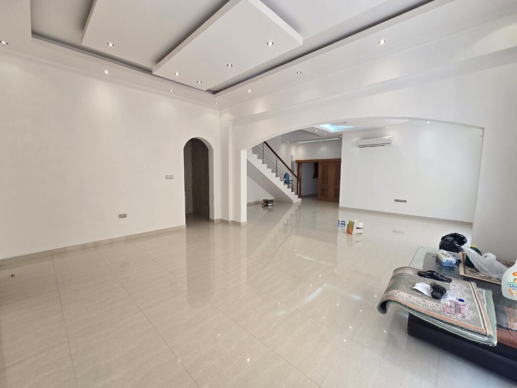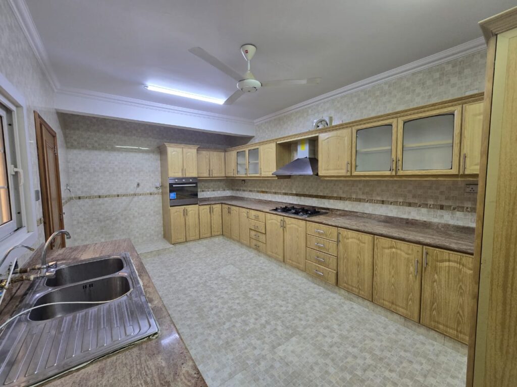 The Modern Villa is located in Bosher 25. Consisting of a 5 bedrooms, 7 bathrooms, Majlis, living, and kitchen. This Villa features a shaded parking, Laundry room, outside kitchen and modern fittings.
