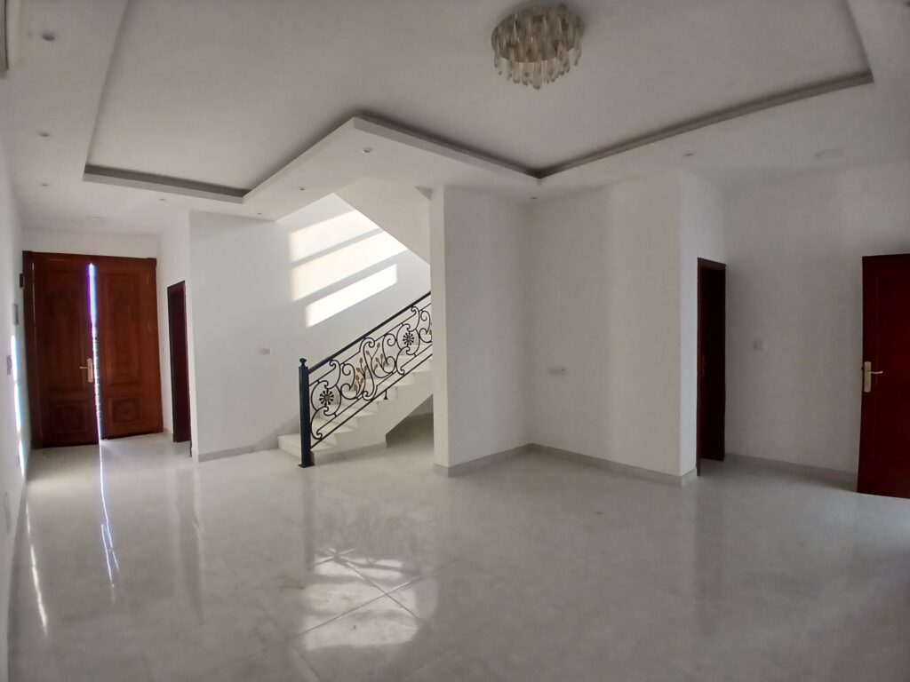 Villa for rent in Ghala, suitable for large families seeking comfort and convenience. The villa consists of 5 bedrooms, 5 bathrooms, a hall, and a kitchen, along with a laundry room and shaded parking.