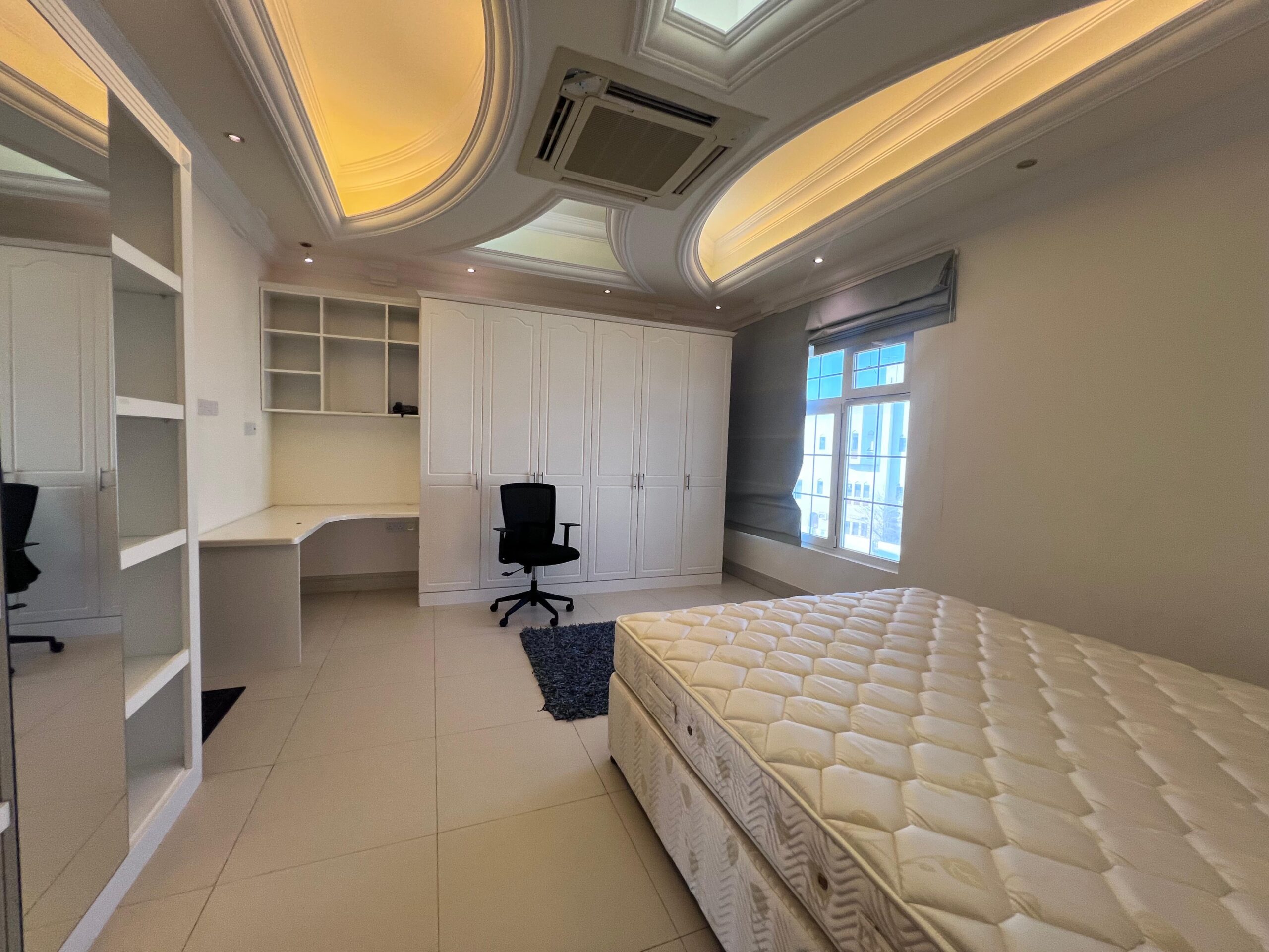 فيلا تنفيذية مستقلة ومفروشة بالكامل للإيجار في مدينة الإعلام، تتميز بمساحات واسعة وتشطيبات فاخرة، وتضم 7+2 غرف نوم و 9 حمّامات، مع عدة صالات، مكتب، 3 مطابخ، مسبح خاص، حدائق منسقة، منطقة شواء، ومواقف سيارات واسعة داخل وخارج الفيلا، إضافة إلى نظام أمني ومصعد.